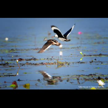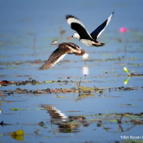| คำอธิบาย : นกคับแคตัวผู้และตัวเมีย โผบิน จากแหล่งหากินตามธรรมชาติในระบบนิเวศในทะเลน้อย แลดูงดงามตา |