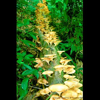 | คำอธิบาย : เห็ดเป็นสิ่งมีชีวิตเล็กๆ สามารถพบได้ตามพื้นดิน น้ำ อากาศ ต้นไม้ สัตว์ และสิ่งไม่มีชีวิต เห็ดรามีทั้งประโยชน์และโทษต่อสิ่งมีชีวิตอื่น และหลายครั้งที่เห็ดราเป็นตัวต้นเหตุของการผุพังเสื่อมสลายของวัตถุที่ไม่มีชีวิต บทบาทสำคัญของเห็ดราเป็นบทบาทที่มีต่อระบบนิเวศ ไม่ว่าจะเป็นบทบาทในการเป็นผู้ย่อยสลายในธรรมชาติ ก่อให้เกิดระบบหมุนเวียนแร่ธาตุต่างๆ เช่น คาร์บอน (C) ไนโตรเจน (N) ออกซิเจน (O) และฟอสฟอรัส (P) จากซากสิ่งมีชีวิตให้กลับคืนสู่ธรรมชาติ เพื่อให้สิ่งมีชีวิตอื่นๆ ได้ใช้ประโยชน์ต่อไป หรือบทบาทการเป็น “แหล่งอาหาร” ของสิ่งมีชีวิตอื่นๆ ในห่วงโซ่อาหารแบบที่เรียกว่า detritus food chain หรือ saprophytic food chain |