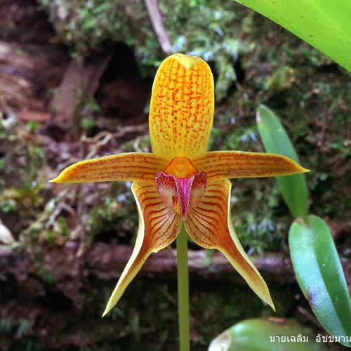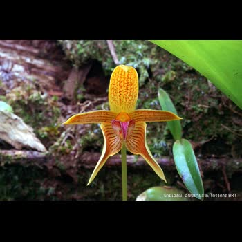 | คำอธิบาย : กล้วยไม้พันธุ์นี้อยู่ในสกุลสิงโตกลอกตา และเป็นพืชถิ่นเดียว พบเฉพาะในประเทศไทยที่นครศรีธรรมราช ศาสตราจารย์ Gunnar Seidenfaden และชนินทร์ โถรัตน์ เป็นผู้ค้นพบกล้วยไม้พันธุ์นี้ และได้ตั้งชื่อว่าสิงโตอาจารย์เต็ม (Bulbophyllum smitinandii) เพื่อเป็นเกียรติแก่ ศ.ดร.เ ต็ม สมิตินันทน์ ปรมาจารย์ทางพฤกษอนุกรมวิธานของไทย |