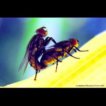 | คำอธิบาย : ภาพลีลาแห่งความรักของแมลงวันผลไม้ชนิดหนึ่ง มันเป็นพฤติกรรมการสืบพันธุ์ และขยายเผ่าพันธุ์ตามธรรมชาติของพวกมัน |