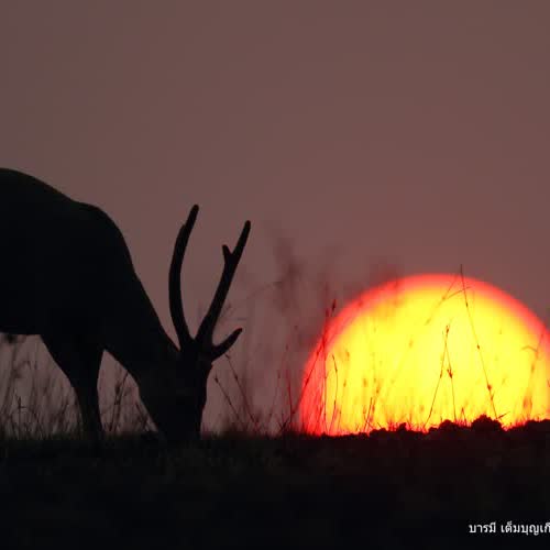 | คำอธิบาย : เนื้อทรายเขาอ่อนที่ออกเดินหากินหญ้าระบัดยามเย็นอย่างอิสระเสรี เป็นภาพที่สะท้อนถึงความสำเร็จและความพยายามในการรักษาเผ่าพันธุ์ของสัตว์ชนิดนี้ให้กลับมาคงอยู่คู่กับธรรมชาติอีกครั้งหนึ่ง |
