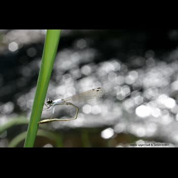 | คำอธิบาย : แมลงปอเข็มแคระอกขาว ใช้ขาคู่หลังทำความสะอาดส่วนท้อง พร้อมกับอาศัยใบหญ้าข้างลำธารเป็นที่เกาะอาบแดด |
