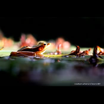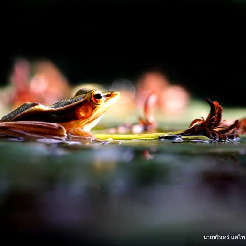 | คำอธิบาย : เราทำอะไรไม่ได้ นอกจากรอ รอ รอแสงพระอาทิตย์ ส่องยังหน้าเจ้าเขียดตัวเล็ก และแล้วจังหวะที่เรารอก็มาถึง แสงส่องเห็นใบหน้าและสลายสีเขียวข้างตัวมันนิดๆ นี่หละใช่เลย “เขียดน้อย” |