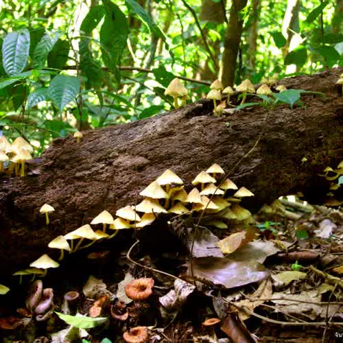 | คำอธิบาย : เมื่อต้นไม้ต้นหนึ่งล้มตายลง ยังให้เกิดประโยชน์ต่อสิ่งมีชีวิตอื่นได้ใช้ส่วนที่เหลือในการเจริญงอกงาม ซึ่งก็คือเห็ดรา และเห็ดราก็ช่วยคืนความอุดมสมบูรณ์และแร่ธาตุจากพืชกลับสู่ดินเป็นวงจรของชีวิตในระบบนิเวศที่ช่วยให้เกิดความหลากหลายอื่นๆ ตามมา |