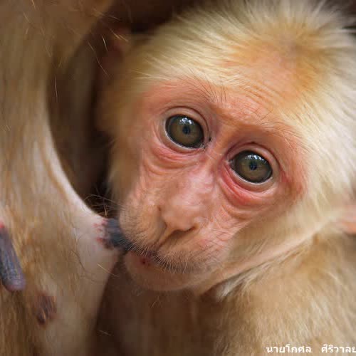 | คำอธิบาย : ลิงเสนเป็นลิงสายพันธ์หนึ่งที่มักพบอยู่ในป่าลึก และมีนิสัยค่อนข้างดุร้าย แต่สำหรับที่วัดถ้ำเขาแดง ลิงเสนฝูงนี้มักลงมาหากินอยู่ในบริเวณวัดเป็นฝูงใหญ่ โดยในฝูงจะมีลูกเล็กๆอยู่หลายตัว เรามักพบเห็นลูกน้อยในอ้อมกอดของแม่ที่เป็นภาพประทับใจเช่นนี้เสมอๆ ในบริเวณชายป่าเชิงเขาด้านหลังวัด |