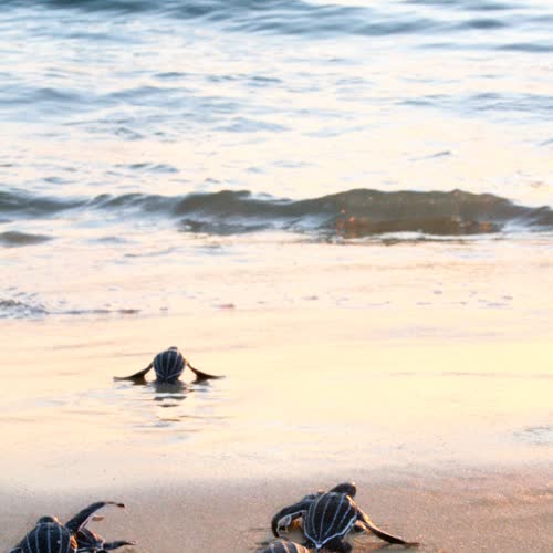| คำอธิบาย : เต่ามะเฟือง เป็นเต่าชนิดที่หายากและใกล้สูญพันธุ์ มีรายงานการวางไข่ในประเทศไทยเฉพาะฝั่งทะเลอันดามัน ซึ่งพบเพียง 1-2 ที่เท่านั้น การได้เห็นเต่าชนิดนี้ขึ้นวางไข่ ฟักไข่ รวมถึงการเดินทางสู่ทะเลของลูกเต่า เป็นภาพที่หาดูได้ยากมาก |