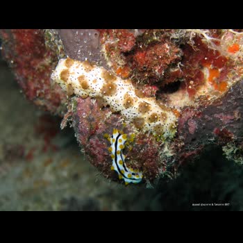 | คำอธิบาย : ปลิงทะเลขาวจุดดำ (Sea cucumber, Pearsonothuria graffei) มีการพัฒนาการของสีตัวจากวัยอ่อนจนถึงตัวเต็มวัยแตกต่างกัน วัยอ่อนมีสีสันและลวดลายเลียนแบบ (Mimicry) ทากเปลือย (Phyllidia varicose) เพื่อเป็นการหลอกศัตรูผู้ล่าว่าเป็นทากเปลือย เนื่องจากทากเปลือยชนิดนี้สามารถสะสมพิษจากอาหารที่มันกินเข้าไปได้ ศัตรูผู้ล่าจึงไม่กล้าเข้ามาตอแย นับว่าเป็นการพัฒนาการเพื่อเอาตัวรอดของปลิงทะเลชนิดนี้ จากนั้นสีสันและลวดลายจะเปลี่ยนแปลงไปตามอายุจนเป็นตัวเต็มวัยตามที่เห็นอยู่ในภาพ เมื่อถึงขั้นตัวเต็มวัยแล้ว ปลิงทะเลชนิดนี้ก็ไม่กลัวศัตรูผู้ล่าอีกต่อไปแล้ว เนื่องจากปลิงทะเลชนิดนี้สามารถสร้างสารพิษในกลุ่ม steroid glycoside ที่เป็นสารพิษส่งผลต่อระบบประสาท (Neuro-toxin) ที่ออกฤทธิ์คล้ายโคเคนโดยไปยับยั้งการส่งสัญญาณสื่อประสาท (transmission of nerve impulses) ถึงแม้ว่าปลิงชนิดนี้ไม่ค่อยมีความสำคัญทางเศรษฐกิจเนื่องจากเนื้อน้อยและอาจจะมีพิษแต่น่าจะเป็นที่สนใจของนักวิชาการทางเคมี เภสัชและวงการแพทย์ที่อาจจะสามารถสกัดสารจากปลิงทะเลชนิดนี้มาเป็นยาระงับปวดและสารต้านมะเร็งได้ ผมพบภาพน่ารักของปลิงสองตัวแต่ต่างวัยกันนี้ ขณะกำลังดำน้ำสำรวจฟองน้ำทะเลพบเจ้าตัวเล็กกำลังคลานตามรุ่นพี่ในถ้ำใต้ปะการังในแนวปะการังซึ่งไม่ค่อยพบกันเลยเนื่องจากแต่ละวัยมีถิ่นอาศัยที่ต่างกัน |