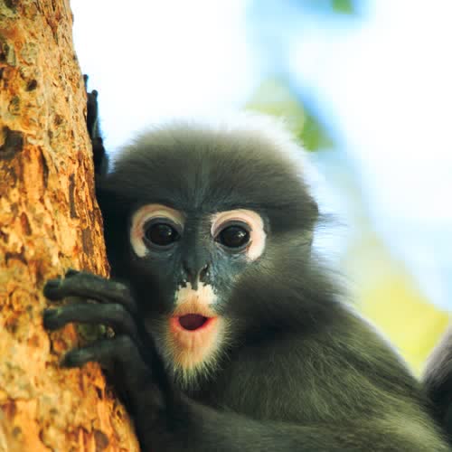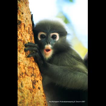 | คำอธิบาย : ค่างแว่นถิ่นใต้ ในอากัปกิริยาแสนน่ารักเมื่อมันเห็นเรากำลังถ่ายรูปมันอยู่ |