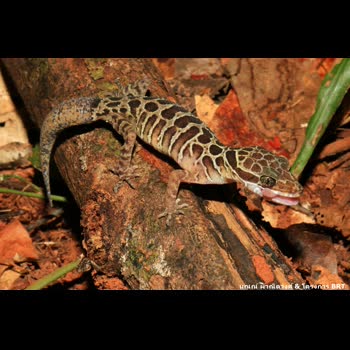 | คำอธิบาย : ตุ๊กกาย เป็นสิ่งมีชีวิตที่อาศัยหากินกลางคืน ถึงแม้จะพบกระจายพันธุ์อยู่ทั่วประเทศ และพบมากถึง 18 ชนิดในประเทศไทย แต่ก็แทบจะไม่มีใครรู้จักหรือเคยเห็นสัตว์ที่ค่อนข้างจะขี้อายกลุ่มนี้เลย (ตุ๊กกายเสือดาว Cyrtodactylus peguensis จัดเป็นสัตว์คุ้มครองของประเทศไทย) |