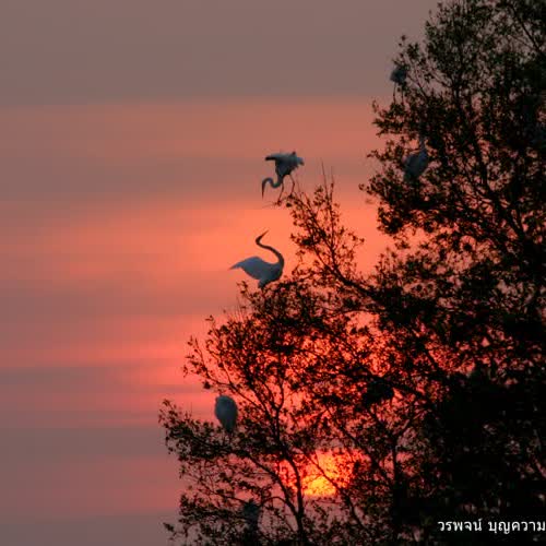 | คำอธิบาย : นกยางโทนใหญ่ แย่งที่เกาะนอนที่ดีที่สุดบนต้นโกงกาง ป่าชายเลนนอกจากจะเป็นพื้นที่อาศัยของสัตว์น้ำแล้ว ยังเป็นพื้นที่อาศัยที่สำคัญต่อนกและสัตว์บกอื่นๆอีกด้วย |