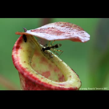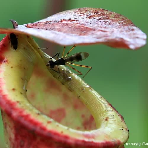 | คำอธิบาย : ต่างจังหวัดถ้าใด้ไปเที่ยว ใด้ไปสัมผัส ธรรมชาติที่เคยใด้อ่านจากหนังสือ ก็จะเห็นกันจริงๆ หลังฝนยามเช้า เฝ้าดูอยู่ตั้งนานว่าพืชชนิดนี้เค้ากินสัตว์ใด้อย่างไร ยางเหนียวที่ขอบปากที่อ้าค้างไว้ มดตัวน้อยจะดึงอย่างไรก็ไม่หลุด |