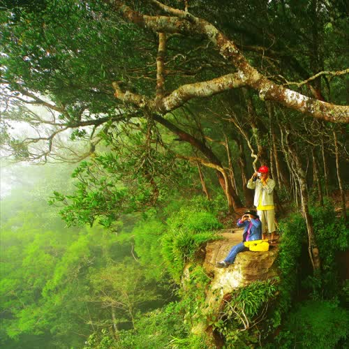 | คำอธิบาย : สภาพแวดล้อมบริเวณผาเดียวดาย แสดงสภาพแวดล้อม และชนิดพันธุ์พืช ที่สามารถมองเห็นไลเคนตามเปลือกไม้ สื่อได้ถึงความชุ่มชื้นของป่าเขาใหญ่ |