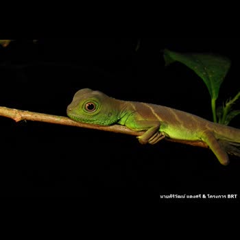 | คำอธิบาย : Physignathus cocincinus (ตะกอง, ลั้ง) วัยเด็ก นอนบนกิ่งไม้ขนาดเล็กที่ทอดข้ามลำธาร โดยปกติ รูปที่มีการเผยแพร่เป็นรูปเต็มวัยและถ่ายจากระยะไกล จาก red list ใกล้สูญพันธุ์ : Endangered(EN) |