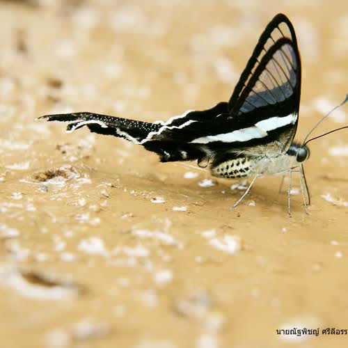 | คำอธิบาย : ผีเสื้อหางมังกรขาว ผีเสื้อชนิดนี้จะมีการปล่อยน้ำออกมาจากรูทวาร คล้ายกำลังฉี่ หลังจากมันดูดกินแร่ธาตุจากพื้นดินแล้ว ร่างกายมันจะเก็บเอาไว้แต่สารอาหาร ส่วนน้ำมันจะขับถ่ายออกมา |