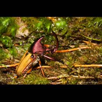 | คำอธิบาย : เจ้าด้วงตัวนี้ทำให้การเดินทางไปสันเย็นดูหน้าตื่นเต้นมากขึ้นทีเดียว ผมไม่เคยพบเห็นด้วงที่มีลักษณะและสีสันที่สวยงามเช่นนี้มากก่อน คิดว่าน้อยคนนักที่จะเคยเห็น หรืออาจไม่เคยมีใครเห็นเลย โดยภาพนี้ผมรอจังหวะที่เจ้าด้วงตัวนี้หยุดนิ่ง หามุมที่เด่นที่สุด และใช้แฟลชในการเปิดรายละเอียดเล็กๆน้อยๆ (โดยส่วนตัวแล้ว ผมยังลุ้นอยู่ว่า เป็นไปได้หรือไม่ที่ด้วงตัวนี้จะเป็นด้วงชนิดใหม่ ) |