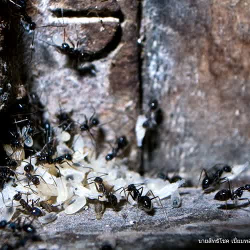 | คำสำคัญ : ฝูงมด, มด, สัญชาตญาณ, แมลง, อพยพ, แมลงไม่มีปีก, มดดำ |