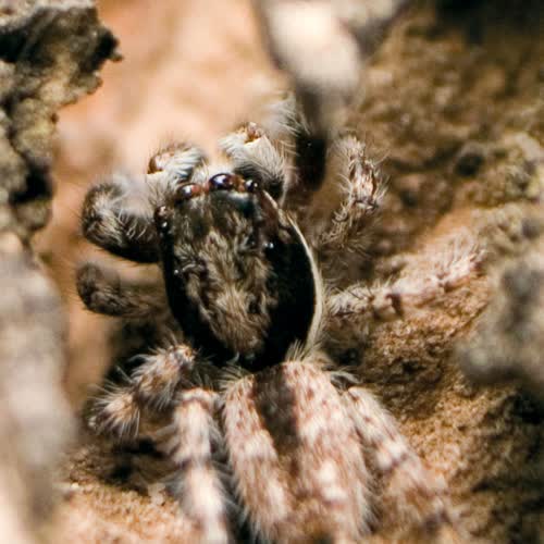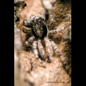 | คำอธิบาย : นับดวงตาของเจ้าตัวนี้แล้ว ปรากฏว่ามีทั้งหมด 6 ดวง ธรรมชาติช่างสร้างสัตว์ชนิดนี้ขึ้นมาได้อย่างน่าอัศจรรย์ใจ ภาพนี้เป็นหนึ่งในสายพันธุ์แมงมุมที่อาศัยอยู่ตามเปลือกไม้และยังสามารถอำพรางตัวให้กลมกลืนเป็นหนึ่งเดียวกับสีของเปลือกไม้จนแทบแยกไม่ออก |