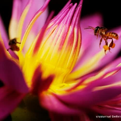 | คำอธิบาย : ผึ้งเป็นสัตว์ที่มีประโยชน์มากในธรรมชาติ เพราะแมลงตอมดอกไม้เพื่อหากิน ในขณะที่บินไปมาก็สมารถช่วยผสมเกสรดอกไม้ได้อีกทางนึง |