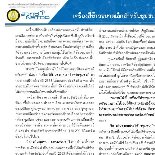 | URL : https://www.nstda.or.th/agritec/medias/publications/166-อุปกรณ์เครื่องจักร-และ-smart-farm/216-เครื่องสีข้าวขนาดเล็กสำหรับครัวเรือนและชุมชน-ใบปลิว |