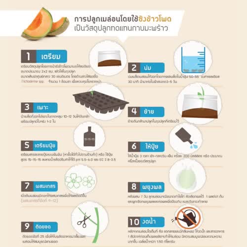 การปลูกเมล่อนโดยใช้ซังข้าวโพด ได้รับใบอนุญาตภายใต้ ให้เผยแพร่-โดยต้องระบุที่มาแต่ห้ามดัดแปลงและห้ามใช้เพื่อการค้า 3.0 Thailand.