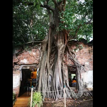 | คำอธิบาย : โบสถ์เก่าแก่มีต้นโพธิ์ ขนาดใหญ่ขึ้นปกคลุมรอบโบสถ์ 4 ต้น ของวัดสังกระต่าย จ.อ่างทอง |