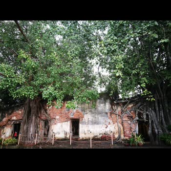 | คำอธิบาย : โบสถ์เก่าแก่มีต้นโพธิ์ ขนาดใหญ่ขึ้นปกคลุมรอบโบสถ์ 4 ต้น ของวัดสังกระต่าย จ.อ่างทอง |