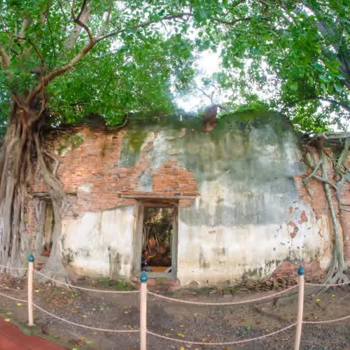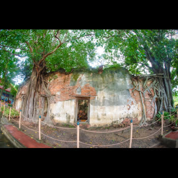 | คำอธิบาย : โบสถ์เก่าแก่มีต้นโพธิ์ ขนาดใหญ่ขึ้นปกคลุมรอบโบสถ์ 4 ต้น ของวัดสังกระต่าย จ.อ่างทอง |