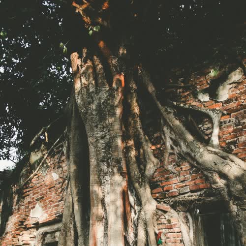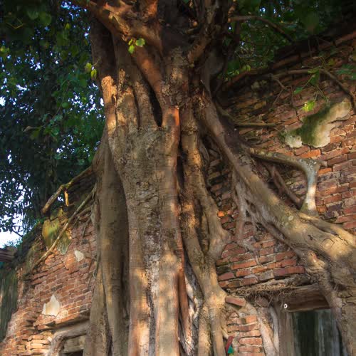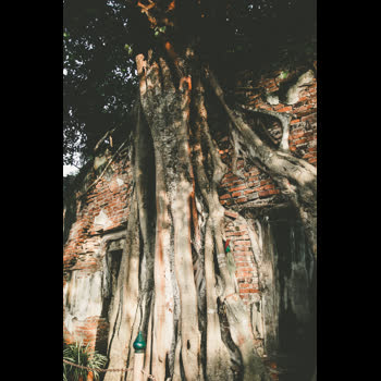 | คำอธิบาย : โบสถ์เก่าแก่มีต้นโพธิ์ ขนาดใหญ่ขึ้นปกคลุมรอบโบสถ์ 4 ต้น ของวัดสังกระต่าย จ.อ่างทอง |