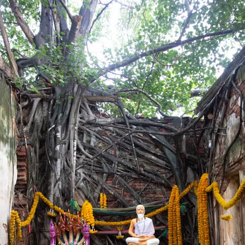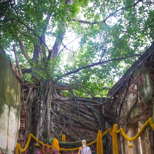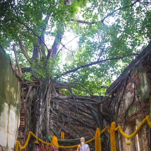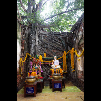| คำอธิบาย : บริเวณโบสถ์เก่าแก่มีต้นโพธิ์ ขนาดใหญ่ขึ้นปกคลุมรอบโบสถ์ 4 ต้น ของวัดสังกระต่าย จ.อ่างทอง |