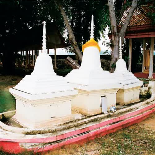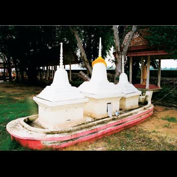 | คำอธิบาย : ด้านใต้ของพระเจดีย์มีเรือสำเภาก่ออิฐถือปูน ลำเรือยาวประมาณ 7 เมตร บนเรือมีพระเจดีย์ประดิษฐานอยู่ 3 องค์ สร้างตามคติความเชื่อของคนมอญที่รำลึกถึงเมื่อครั้งพระเจ้าอโศกมหาราชโปรดเกล้าฯ ให้พระโสณะและพระอุตตระเป็นสมณะฑูต นำพระพุทธศาสนามาเผยแพร่ที่เมืองสุธรรมวดีหรือเมืองสะเทิมในรามัญประเทศ โดยเดินทางมาทางเรือข้ามอ่าวเมาะตะมะ พระพุทธศาสนาได้ประดิษฐานมั่นคงในรามัญประเทศเผยแผ่ไปในพม่า ไทย ลาว เขมร จนถึงปัจจุบันนี้ วัดมอญจึงนิยมสร้างเป็นเรือสำเภา ภายในมีเจดีย์ 3 องค์ อันหมายถึง พระพุทธ พระธรรม พระสงฆ์ |