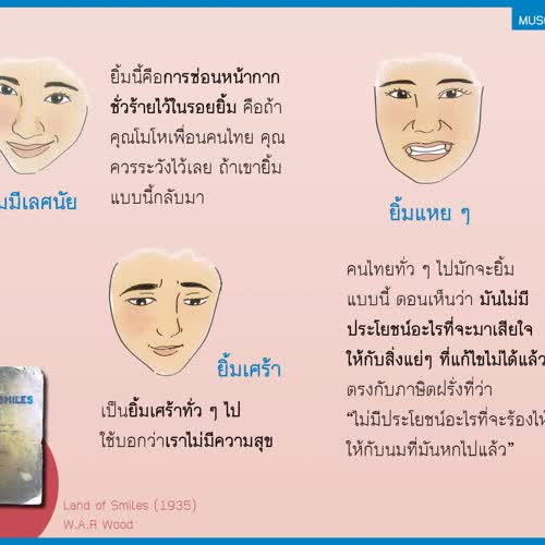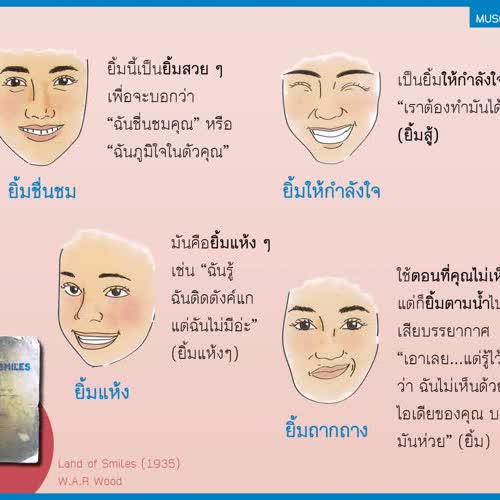 | คำสำคัญ : ยิ้มสยาม, ภาษากาย, รอยยิ้ม, วิถีชีวิต, ความเป็นไทย, อารมณ์ความรู้สึก, วัฒนธรรม, ประเทศไทย, สยาม, Infographic, Thainess, ถอดรหัส, การแสดงออก, คนไทย, พิพิธภัณฑ์, อินโฟกราฟิก, มิวเซียมสยาม |