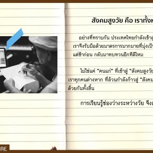 Infographic เดอะ ชราภาพ สังคมสูงวัยคือเราทั้งหมด ได้รับใบอนุญาตภายใต้ ให้เผยแพร่-ดัดแปลง-โดยต้องระบุที่มาแต่ห้ามใช้เพื่อการค้าและต้องเผยแพร่งานดัดแปลงโดยใช้สัญญาอนุญาตชนิดเดียวกัน 3.0 Thailand.