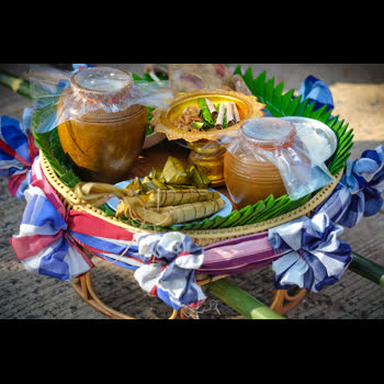 | คำอธิบาย : ของเซ่นไหว้ในขบวนแห่ งานหวัวบุญเบิกฟ้า 2561 |