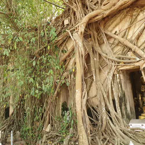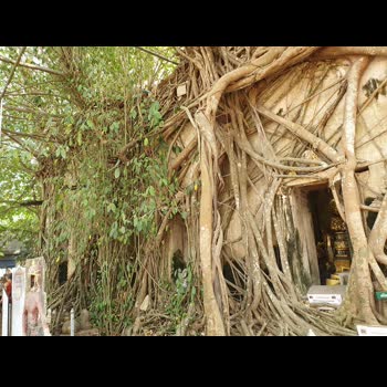 | คำอธิบาย : "โบสถ์ปรกโพธิ์" ถูกปรกคลุมด้วยรากไม้ใหญ่ทั้งโพธิ์ ไทร ไกร และกร่าง มีหลวงพ่อนิลมณี หรือหลวงพ่อดำ เป็นองค์พระประธาน ณ วัดบางกุ้ง ค่ายบางกุ้ง จ.สมุทรสงคราม |