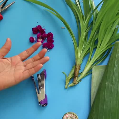 | คำสำคัญ : ช่อดอกไม้, ใบเตยหอม, กุหลาบ |