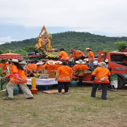 | คำอธิบาย : ประเพณีแห่พญายม เป็นประเพณีเก่าแก่ของตำบลบางพระ ซึ่งเป็นหนึ่งในหลายตำบลของอำเภอศรีราชา มีการปฏิบัติโดยการสร้างหุ่นพญายม และแห่ไปลอยทะเลในเวลาโพล้เพล้ โดยมีความเชื่อถือว่าพญายมจะนำโรคภัยไข้เจ็บและเคราะห์ร้ายต่าง ๆ ไปด้วย จากการปฏิบัติสืบต่อกันมาเป็นระยะเวลานานหลายหน่วยงานเริ่มเห็นความสำคัญของการแห่พญายมและเข้ามามีส่วนร่วมในกิจกรรม ซึ่งเทศบาลตำบลบางพระเห็นความสำคัญของประเพณีแห่พญายมนี้ เนื่องจากเห็นว่าประเพณีแห่พญายมเป็นเอกลักษณ์ของชาวบางพระ มีจุดเด่นที่เป็นประเพณีที่ก่อให้เกิดการรวมพลังและรวมจิตใจของชุมชนอย่างแท้จริง เช่นเดียวกันกับประเพณีกองข้าวของศรีราชา เป็นเสมือนวัฒนธรรมพื้นบ้านที่สืบต่อกันมาเป็นเวลานาน ดังนั้นในวันไหลสุดท้ายขิงตรุษสงกรานต์ (ซึ่งถือเป็นวันปีใหม่ของไทย) ชาวบ้านจะพากันแห่พญายมที่ทำง่าย ๆ จากโครงไม้ไผ่ฟางข้าว และกระดาษแต่งแต้มด้วยดินสอพองหรือดินหม้อให้แลดูเป็นองค์ปัจจุบันมีวิธีการประณีต ทำรูปพญายมอย่างงดงาม นำไปปล่อยในทะเลลึกเป็นอันเสร็จพิธี |