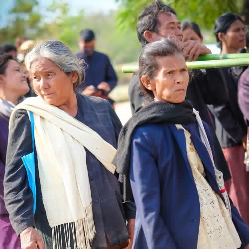 | คำอธิบาย : ชาวกูย บ้านกู่ รอเข้าขบวนแห่ในงานหวัวบุญเบิกฟ้า ปี 2561 |