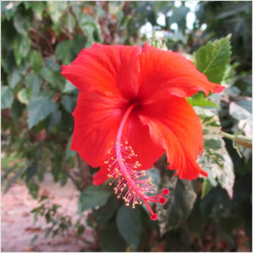 | คำอธิบาย : ดอกชบาสีแดง |