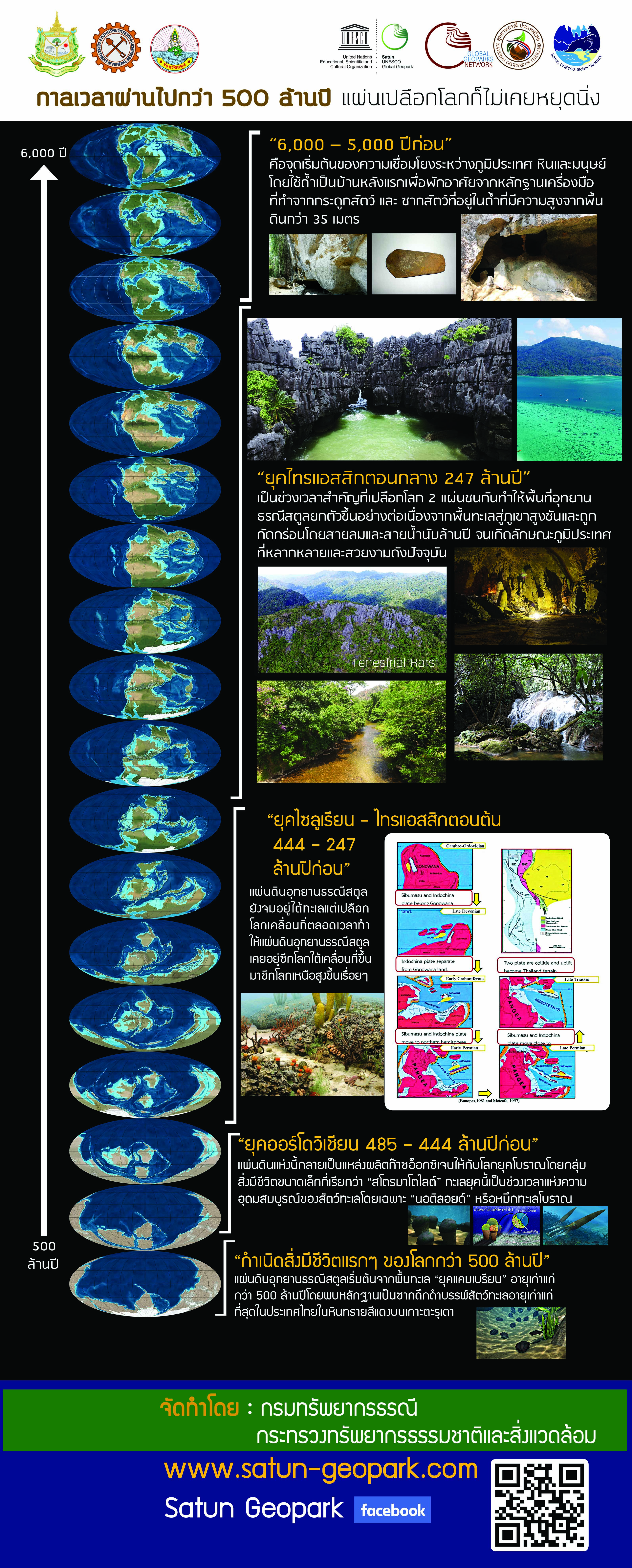 | คำสำคัญ : สตูลจีโอพาร์ค, Satun Geopark, การแบ่งยุคทางธรณีวิทยา, กาลเวลา |