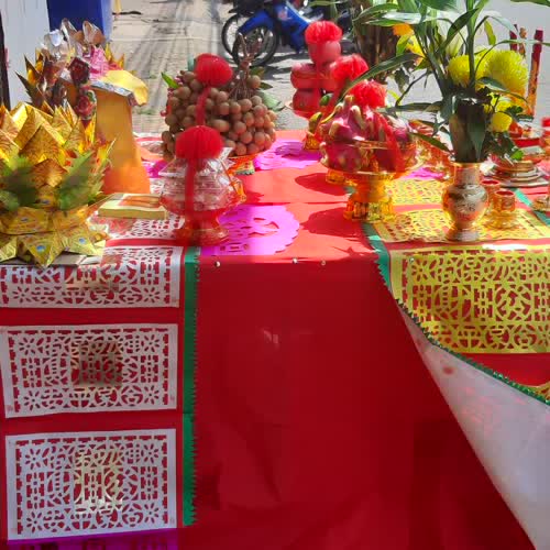 | ชื่อเรื่อง : โต๊ะบูชางานสมโภชและขบวนแห่เจ้าแม่ทับทิมศาลเจ้าไหหลำ |