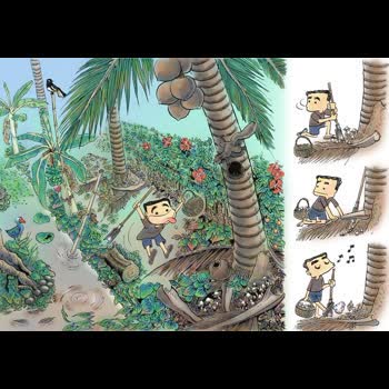 | คำอธิบาย : ของอร่อยที่สุดในสวนไม่ใช่ปลาเนื้อแน่นๆ หรือทุเรียนหอมๆ แต่กลับเป็นเห็ดที่ผุดโผล่มาจากพื้นดินนี่แหละเห็ดที่ว่าก็คือ ‘เห็ดโคน’ ที่ราคาหลายบาททีเดียว ช่วงปลายฝนต้นหนาว เป็นช่วงปิดเทอมด้วย เราจะมีเวลาเดินท่อกๆอยู่รอบๆสวนเกือบทุกวัน ขณะที่เดินก็สอดส่ายสายตาไปดูโน่นนี่ทั่วๆ ทั้งนกอีโก้งสีสวยๆ นกกางเขนเสียงเพราะใส ลูกกบลูกเขียดบนใบบัวแต่จุดมุ่งหมายที่แท้จริงคือ วัตถุขาวๆนวลๆที่ผุดขึ้นมาจากผิวดิน โดยเฉพาะตามโคนต้นมะพร้าวที่รกรุงรังด้วยเศษใบไม้ผุพัง และน่าจะมีจอมปลวกอยู่ข้างล่างผิวดิน นั่นคือเห็ดโคนที่ว่า เราจะขุดดอกที่ตูมและบานกลับบ้านรีบให้แม่ทำกับข้าวอย่าคิดที่จะทำอะไรพิสดารเพราะจะเสียคุณค่าของดีของเห็ดโคนหมด เราแค่ล้างให้สะอาด ตั้งน้ำเปล่าพอเดือด บุกระเทียมใส่ และใส่เห็ดโคนลงไป ปรุงรสด้วยน้ำปลาดีพอมีรสเค็มปะแล่ม แค่นั้นก็ซดได้คล่องคอ ด้วยความหอมหวานของเห็ดโคนและผิวสัมผัสที่หนึบหนับเคี้ยวได้เพลิน สู้อาหารภัตตาคารได้อย่างไม่เคอะเขินแต่การเก็บเห็ดไม่ใช่แค่ขุดๆเอามันนะ เพราะจุดที่ขุดเห็ดมันยังมีเชื้อเห็ดอยู่ซึ่งจะทะยอยๆ ผุดโผล่ขึ้นมาบานหลังฝนอยู่จนหมดฤดู เมื่อขุดแล้วเราก็ต้องเอาทางมะพร้าวกะใบไม้แห้งแถวนั้นมาสุมหมกจุดที่เราเจอเห็ดเอาไว้บางๆ ไม่ใช่เพื่อให้เห็ดงอกดีขึ้นหรอก แต่เพื่อซ่อนจุดพบเห็ดไว้ไม่ให้ใครมาเจอแล้วแย่งเก็บเห็ดโคนเหล่านี้ไปต่างหาก ฮ่าๆๆๆๆๆ |