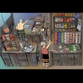 | คำสำคัญ : งานศิลปะ, ค้าขาย, ร้านค้า, ห้องครัว, ร้านของชำ, บ้านสวน, วิถีชาวบ้าน, ภาพวาด, วิถีชีวิต |