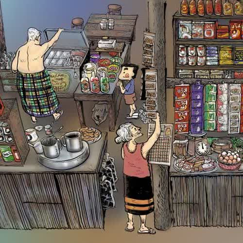 คำอธิบาย : เมื่อก่อนไม่มีร้านสะดวกซื้อทุกหัวถนนเหมือนปัจจุบัน แม้ซอยวัดฝางจะเป็นเพียงซอยเล็กๆ ทะลุไปในเรือกสวน แต่ก็มีร้านโชห่วยหลายๆร้าน ร้านแต่ละร้านมีของขายเล็กๆน้อยๆด้วยว่าสมัยนั้นสินค้าไม่หลากหลายยี่ห้อเหมือนเดี๋ยวนี้ ร้านที่บ้านเราต้องไปและแวะทุกวันอยู่กลางซอย ก่อนสะพานข้ามเข้ามาถนนแคบๆในสวน เราเรียกว่าร้านยายแต๋วตาพร ตามชื่อเจ้าของร้านเห็นเป็นร้านเพิงสังกะสีอย่างนี้ ร้านแกก็มีทุกอย่างเพียงพอกับความต้องการง่ายๆของชาวสวน มีกาแฟโบราณกะปาท่องโก๋ไว้ให้คอกาแฟ มีบุหรี่เหล้าโรงเหล้าขาวไว้ขายให้ชาวสวนตั้งวงยามเย็น มีหวานเย็นน้ำแข็งใส ที่ใส่เครื่องเคราแล้วไสน้ำแข็งด้วยกบไส แล้วราดน้ำหวามเฮลส์บลูบอยหลากสีสันไว้ขายเด็กๆกินเล่นยามปิดเทอมหน้าร้อนเมื่อก่อนไม่มีตู้เย็น น้ำอัดลมไม่กี่เจ้า เนื้อสัตว์ ต่างก็แช่อยู่ในถังน้ำแข็ง ที่เอาไว้ขายทั้งน้ำแข็งก้อนและน้ำแข็งทุบ ตาพรจะใช้ขวานเล็กๆเฉาะน้ำแข็งให้แตก ถ้าเป็นน้ำแข็งทุบ ก็เอาใส่ถุงแล้วใช้สากหรือค้อน ทุบให้ละเอียด นอกจากนั้นยังมีขนมต่างๆใส่ปี๊บหรือขวดโหลไว้ ทั้งทองม้วน ถั่วทอดที่เป็นแผ่นๆ ขนมสมัยนั้นไม่ใช่ของมียี่ห้ออะไร มักเป็นพวกขนมโก๋ที่เป็นรูปปลาขาวๆกินแล้วคอแห้งนั่นแหละ แล้วก็ขนมลูกเต๋า ถั่วตัด ฯลฯ มียี่ห้อหน่อยก็เป็นโดนัตกับกล้วยตากของเดชวรงค์ ชิ้นละบาทเดียว นั่นก็หรูหราแล้วผงซักฟอก ยาสระผมเป็นซองๆต่อกันเป็นแผงๆ ซองละบาทสองบาท นอกจากนั้นก็มีผัก ปลาทูไม่กี่เข่ง กับข้าวและของแห้งอย่างน้ำตาลปี๊บ น้ำปลาอย่างละนิดละหน่อย จำได้ว่าร้านยายแต๋วมักมีหมานอนอยู่เกลื่อนร้าน พวกเด็กๆอย่างเราก็กลัวเหมือนกัน แต่ยายแต๋วแกใจดี เคี้ยวหมากจนปากดำ แกย้ายร้านอยู่สองสามครั้งเพราะโดนไล่ที่ และมีร้านขายของชำที่ใหญ่กว่าของเยอะกว่าและซื้อของแบบเซ็นเชื่อไว้ได้มาเปิดใกล้ๆแต่ถ้าเวลาออกมานอกสวนแล้ว อยากกินนมเย็นหรือหวานเย็น เราก็จะแวะร้านยายแต๋วทุกครั้งไม่เคยขาด สองคนผัวเมียได้ตายไปหลายปีแล้ว แต่เวลานึกถึงโชห่วย ร้านแกจะแวบเข้ามาในความคิดเราเป็นอันดับต้นๆเสมอเพื่อนๆลองหาสิ่งเหล่านี้ในภาพเล่นดูนะ กระป๋องไมโล กระป๋องเก็บตังค์ กระป๋องลูกอม มียี่ห้อไรบ้างจำได้มั้ย บรีส เปาฯ แผงฉลากวัดดวง นมมะลิ สบู่ดอกบัวกะนางนวล ยาสระผมแฟซ่ากะคาโอ ถ่านตรากบ กะตราเนชั่นแนล วิเศษนิยม แป้งเด็กฮอลลิวูด ม้วนเชือกฟาง ถุงถ่านหุงข้าว กบไสน้ำแข็ง ลองหาดูๆ |