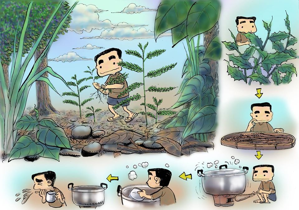 | คำอธิบาย : เมื่อก่อนพวกผู้ใหญ่มักจะกินพืชสมุนไพรกัน หลักๆ ก็คือ ต้นลูกใต้ใบ และ ต้นเหงือกปลาหมอ เราเด็กๆ ก็อาสารับจ้างไปเก็บกันได้เงินกินขนมเล็กๆ น้อยๆ ต้นลูกใต้ใบ เป็นต้นไม้เล็กๆ ชอบขึ้นในที่แดดจัด งอกทั่วไปตามถนนหนทาง จะสูงประมาณ 1 ฟุต ใบประกอบแบบขนนกชั้นเดียว หรือง่ายๆ ก็ใบคล้ายต้นกระถินนั่นล่ะ ถ้าเราพลิกดูข้างใต้ใบ จะเห็นมีลูกกลมๆ เล็กๆ เกาะอยู่ตามก้านติดกับข้อใบ ที่ผู้ใหญ่เอามากินเพราะเชื่อว่ามันจะช่วยลดไขมันในเลือดและช่วยลดความดันโลหิต เรากับแม่มักจะไปเก็บที่ลานหลังอนามัยสวนใหญ่ (ปัจจุบันไม่มีอยู่แล้ว)ที่นั่นจะเป็นลานกรวดโล่งกว้าง เหมาะที่ต้นลูกใต้ใบจะแข่งกันแทงยอดขึ้นมา คนเฝ้าอนามัยก็เลี้ยงหมาเยอะเสียด้วย แต่เราก็ไปเก็บจนคุ้นเคยเมื่อเก็บได้เยอะแล้วเราก็จะเอามาล้างเอาเศษดินเศษหินออก แล้วก็เอาไปตากในกระด้งให้แห้ง จากนั้นก็จะเอามาต้มสีและกลิ่นของน้ำต้มลูกใต้ใบ จะทำให้เด็กทุกคนนึกถึงตอนแม่มดกำลังเอาส่วนผสมน่าหวาดผวาลงเคี่ยวเป็นยาพิษไปให้นางเอกในนิทานกินนั่นแหละ เมื่อน้ำงวดก็เติมน้ำลงไปใหม่เคี่ยวต่อจนน้ำสีเข้มปั้ด เด็กๆ ไม่มีใครกล้ากินหรอก เคยลองแล้วต้องบ้วนทิ้งเพราะทั้งขม ทั้งขื่น แต่อย่างโบราณเค้าคงว่าไว้ หวานเป็นลม ขมเป็นยาแต่ปัจจุบันเค้าก็เลิกกินกันแล้วนะ กลับมากินยาแผนปัจจุบันกันหมด แต่ทุกครั้งที่เห็นต้นลูกใต้ใบตามท้องถนน มันก็ชวนให้เราคิดถึงเรื่องราวในอดีตครั้งยังเดินท่อกๆ เก็บลูกใต้ใบใส่ถุงอยู่เสมอ ความทรงจำนี่มันทำให้มีความสุขนะแต่ก็เจ็บปวดใจที่รู้ว่าตัวเองไม่สามารถย้อนมันกลับคืนมาได้ |