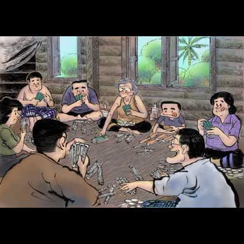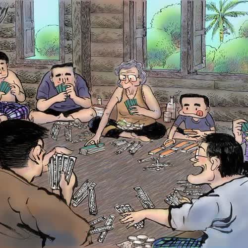 | คำอธิบาย : ยามว่างจากงานเสาร์อาทิตย์พร้อมหน้าเมื่อไหร่ ป้าจะเป็นคนเรียกประชุมเพื่อตั้งวงรำพัด รำพัดก็คือเล่นไพ่นั่นแหละ ในวงจะมีป้าเป็นประธาน และเหล่าพี่ๆ ที่เป็นลูกของป้า รวมทั้งพ่อของเราด้วยไพ่ที่เล่นเรามักจะเล่นไพ่ผ่อง หรือไพ่ตอง เป็นไพ่ใบยาวๆ มีลวดลายสวยงามมาก ทั้งชุดจะมี 30 ใบ หนึ่งสำรับใช้ 4 ชุดคือ 120 ใบ ไพ่แต่ละตัวจะมีชื่อของมันอยู่ เรียกยากและจำยากมาก แต่ก็มีเสน่ห์อยู่ในชื่อของมัน เช่น เอี่ยวแดง เอี่ยวเกือก เอี่ยวชี เอี่ยวนาง เอี่ยวหนู สองคน สองตา สององคต สามคน สามตา สามนก สี่คน สี่มะเขือ สี่นม ห้าคน ห้าแตง ห้านก หกคน หกตา หกละเอียด เจ็ดคน เจ็ดพัด เจ็ดนกแปดคน แปดตา แปดละเอียด เก้าคน เก้าจัน เก้าแดง และไก่โต้ง เป็นตัวโจ๊ก เราจำชื่อได้ไม่หมดวิธีเล่นก็เหมือนรัมมี่ จั่วไพ่ให้ตรงกับไพ่ในมือ มีทั้งตอง กับเรียง วงกันเองอย่างในบ้านสวนเล่นกันสนุกๆ ไม่หวังรวย กินกันตาละบาท ถกก็สองบาท เล่นกันข้ามวันจนเหน็บกินขาแทบตาย ได้แค่ค่ากาแฟโอเลี้ยงหรือก๋วยเตี๋ยวร้านยายเตี้ยชามสองชาม แต่ที่เราชอบคือ ในวงเค้าจะให้เด็กอย่างเราทำไพ่ เจ้ามือ 12 ใบ ลูกวง 11 ใบ เพราะเวลาเล่นจะใช้ไพ่สองสำรับ สำรับหนึ่งพื้นหลังเขียว อีกสำรับจะเป็นสีแดงหรือส้ม ไม่ให้สับสนกัน คนเล่นๆ ไปสำรับหนึ่ง คนทำก็ทำอีกสำรับหนึ่งเตรียมไว้ รอที่เค้ามีการ‘กิน’กัน ค่าทำไพ่ก็ได้จากคนที่กินตาละ 1 บาท หรือถ้าใคร‘ถก’คนทำก็ได้ตั้ง 2 บาทนอกจากงานทำไพ่เรายังมีอาชีพ วิ่งซื้อของที่วัดฝาง เพราะวงนี้เวลาเล่นไพ่ชอบจ้างไปซื้อก๋วยเตี๋ยว ขนมปังแพแล้วก็โอเลี้ยงมากินกัน ช่วงปิดเทอม นี่คือรายได้หลักของเรา บางทีเก็บไปซื้อของเล่นหรือการ์ตูนได้เป็นหลักร้อยบาทอ้อที่เรียกตอนว่าคณิตศาสตรืชาวสวน ก็เพราะ เล่นไพ่นี่ก็เหมือนได้อยู่ในชั่วโมงเรียนวิชาตรรกศาสร์ เรื่องความน่าจะเป็นไง หรือท่านว่าไม่จริง |