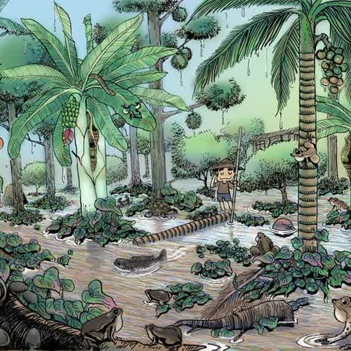 | คำอธิบาย : เมื่อก่อนฤดูกาลต่างๆมันไม่บิดเบี้ยวเพี้ยนผันเหมือนปัจจุบัน ฤดูไหนก็ฤดูนั้น จะร้อน ฝน หนาว ก็ ร้อน ฝน หนาว กันจะจะ ตรงๆ และเมื่อยามหน้าฝน ในบ้านสวน ฝนก็จะตกไม่ลืมหูลืมตา หลากหลายรูปแบบ ทั้งละอองน้ำยิบเป็นสายหมอก ฝนธรรมดา ฝนไล่ช้างที่เม็ดมหึมาบ่อยครั้งที่ลำคลองท้องร่องไม่สามารถ รองรับปริมาณน้ำฝนที่ตกมาได้ ก็จะเอ่อล้นท่วมอกร่อง กลายเป็นบึงน้ำผืนย่อมๆ ถ้าเดินไม่ดีก็อาจเหยียบ ร่วงลงไปในลำคลองได้ เพราะไม่รู้ว่าตรงไหนเป็นดิน ตรงไหนเป็นน้ำช่วงหลังฝนตกใหม่ๆ กลิ่นหอมของพื้นดินระอุขึ้นมาอวลในจมูก ใบไม้เขียวชะอุ่ม อบร่ำบรรยากาศไปด้วยความชื้นเย็น บางครั้งอาจเห็นปลาช่อน หรือปลาหมอ แถกขึ้นมาตามพื้นดินเพื่อหาอาหาร แมลงตัวเล็กๆ บนอกร่องเสียด้วยซ้ำ ช่วงนี้แหละถ้าเราเข้าไปในสวน เดินอย่างเงียบๆ และตั้งใจฟัง จะได้ยินเสียงร้อง ของเหล่า กบ เขียด ปาด อึ่งอ่าง และคางคก ร้องประสานกันมาดังระงมตั้งแต่เสียงทุ้มกว้างของอึ่งอ่างที่คลานต้วมเตี้ยมตามพื้นดิน เสียงแหลมเล็กของเขียดใบไม้ตัวสีเขียวที่ชอบเกาะตามใบกล้วยและใบบอน เสียงกบ ที่ลอยคออยูในคลองและโดดหนีไปมายามคนเดินผ่าน ร้อง อ๊บ อ๊บ เป็นจังหวะสม่ำเสมอราวกับใช้เมโทรโนมในการช่วยนับจังหวะ ปาดที่เกาะคาคบไม้เพื่อขึ้นไปไข่ห้อยไว้ตามกิ่งไม้เพื่อรอน้ำฝนชะไข่ลงไปในลำคลองที่เสียงแหลมสูงเป็นจังหวะสั้นๆกังวานลึก ไปยันเสียงของคางคก ที่เสียงรัวสม่ำเสมอกัน ราวกับเป็นฉากหลังของพื้นเสียงของตัวอื่นๆเวลาเราทำเสียงดังรบกวนสักครั้งหนึ่ง เสียงสัตว์ครึ่งบกครึ่งน้ำเหล่านี้ก็จะเงียบเสียงพร้อมกัน เงียบจนเราแทบหูอื้อ ราวกับการกล่าวโทษของนักดนตรีที่จะหยุดการแสดงเมื่อผู้ชมผู้ฟังทำเสียงรบกวนไม่ให้เกียรติบ่อยครั้งในชีวิตปัจจุบันของเราที่ไปชมงานดนตรีในสวน ตามสวนสาธารณะหลายๆแห่งที่เค้าจัดกัน มันงดงาม ไพเราะ สดชื่น และให้พลังงาน แต่กระนั้นก็ยังไม่มีดนตรีในสวนครั้งไหนที่พาเราไปสู่ความสงบ ได้เท่ากับดนตรีในสวนของเหล่านักดนตรีครึ่งบกครึ่งน้ำ ในอดีตนั่นเลย |