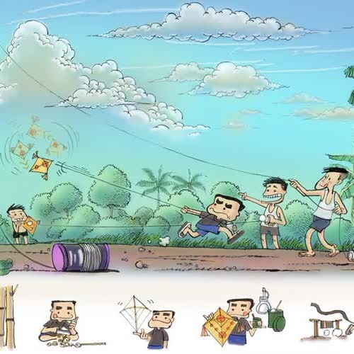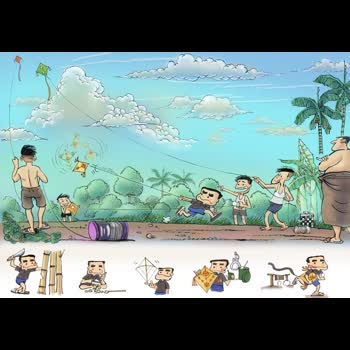 | คำอธิบาย : เมื่อก่อนพอลมร้อนพัดผ่านช่วงปลายมีนาคม เด็กๆ ต่างเร่งวันคืนให้ปิดเทอม เพื่อที่จะได้มาใช้เวลาค่อนวันวิ่งว่าวกันที่ถนนตัดใหม่ที่เคยเล่าไปแล้วเรามักทำว่าวเล่นกันเอง ตอนแรกก็ไปหาไม้ไผ่ตามกอไผ่สีสุก เพราะมันตรงและเหนียวดีหลังจากนั้นก็ใช้มีดจักตอกเหลาจนเกลี้ยงเกลา ส่วนอกจะสั้นและใหญ่กว่านิดหน่อย ส่วนปีกจะเหลาให้ปลายบางอ่อนเอามาดัดให้โค้งสวยแล้วจึงใช้เชือกป่านว่าวผูกเป็นโครงว่าว เตรียมทาแป้งเปียกติดกระดาษถ้าไม่มีกระดาษว่าวสวยๆ เราก็ใช้กระดาษหนังสือพิมพ์เอาเลย ติดด้วยกาวหรือแป้งเปียกขวดเขียวๆ มอๆ ขวดละบาทนั่นแหละแล้วก็จะพับกระดาษเงินจากซองบุหรี่ของพ่อมาพับทบๆ แล้วตัดเป็นรูปดาวสวยงาม เอาติดตัวว่าวในตำแหน่งที่ใช้ผูกซุงเชือกว่าวเด็กผู้ชายชอบว่าวอีลุ้ม คือมีพู่ที่ปีก แต่ไม่มีหาง เพราะเค้าว่ามันเป็นตัวผู้ ถ้าว่าวปักเป้ามีหางจะเป็นตัวเมีย แต่ถ้าวิ่งแล้วว่าวไม่ขึ้นซะที ก็ต้องจำใจติดหางเป็นว่าวปักเป้าไป หางถ้าไม่มีกระดาษก็ใช้ชายผ้าขี้ริ้วหรือชายผ้าขาวม้าเก่านั่นแหละพอว่าวขึ้นแล้วก็ไม่มีไรทำนอกจากยืนดูว่าวสีสดสวยตัดกับฉากฟ้ากว้างสีน้ำเงินครามและหมู่เมฆปุยใหญ่ๆ มันสวยจริงๆ นานๆ ทีก็จะแอ๊คท่า กระตุกป่านให้ว่าวโฉบซ้ายขวาบ้าง อยู่อย่างนั้นจนเย็นมืดค่ำ แม่มาตามนั่นแหละถึงเอาว่าวลง กลับบ้านแต่ที่สนุกที่สุดในการเล่นว่าวของเราก็คือ ตอนที่ว่าวขาดลอยนั่นแหละ วิ่งตามว่าวไปตามสวนชาวบ้านเขา ทั้งรก ทั้งกลัวหมา ตื่นเต้นเหมือนไล่จับคนร้าย ทายกันต่างๆ นานาว่าตกตรงโน้น ลมพัดไปทางนี้ สนุกดี บางทีว่าวติดอยู่บนยอดยางนาสูงลิบ เอาลงมาไม่ได้ ก็ต้องกลับไปเริ่มทำใหม่ตั้งแต่แรกเดี๋ยวนี้คงหาเด็กๆ ที่จะทำว่าวเล่นเองยาก ส่วนใหญ่จะซื้อ และว่าวที่เล่นก็มักเป็นว่าวรูปแบบของฝรั่ง และเด็กเดี๋ยวนี้ก็คงเลือกที่ก้มหน้าเล่นมือถือมากกว่า อีกทั้งที่วิ่งว่าวเดี๋ยวนี้แทบไม่เหลือให้เด็กเล่น ถ้าไม่ติดตึกสูงๆ ใหญ่ๆ ก็อันตรายจากสายไฟฟ้ารกเต็มเมือง ที่ไม่ใช่กลืนกินธรรมชาติเรือกสวนไป แต่มันยังกัดกินไปถึงวิถีชีวิตการเล่นของเด็กยุคเราไปอีกด้วย |