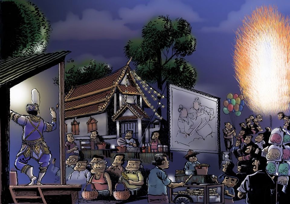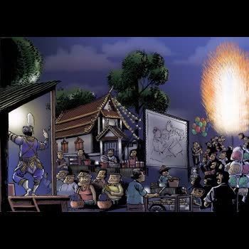 | คำอธิบาย : นานๆ วัดฝางของชาวสวนจะมีงานวัดสักครั้ง น่าจะเป็นงานบุญกฐินถ้าจำไม่ผิด เป็นงานวัดที่เล็กมากๆ ไม่มีอะไรมากมายเหมือนงานวัดเขมาฯที่งานบุญฉลองพระบรมสารีริกธาตุ ทุกวันมาฆบูชาสมัยนั้นแทบจะเป็นงานประจำจังหวัดซึ่งมีเพียงปีละครั้งและยิ่งใหญ่มาก ไว้วันหลังจะเล่าให้ฟังเนาะกลับมางานวัดฝาง ด้วยเป็นวัดอยู่ในสวน หนทางก็ไม่มี ลานวัดก็ไม่กว้างขวางมาก จึงมีมหรสพอยู่ไม่กี่อย่าง กับร้านค้าไม่กี่เจ้า แต่ชาวสวนแทบทุกคนก็มารวมกันในคืนนั้นแหละ เพราะนานๆ จะมีอะไรที่สนุกตื่นเต้นกันเสียทีที่แน่ๆ มีลิเก ซึ่งโรงลิเกก็เล็กแคบซะจนตัวละครสองสามคนขึ้นไปพร้อมกันก็เต็มแล้ว แต่ก็เป็นความบันเทิงให้ผู้เฒ่าผู้แก่นั่งเคี้ยวหมากดูเพลินๆ ได้อย่างดี เพราะสมัยนั้น น้อยบ้านมากที่จะมีทีวีดู และการใช้ไฟจากวัดก็เดี๋ยวตกเดี๋ยวดับจนแทบมีเครื่องไฟฟ้าได้ไม่กี่อย่างต่อบ้านหนังกลางแปลงจอไม่ใหญ่โตเท่าไหร่ น่าจะขนมาทางเรือผ่านคลองบางเขนที่ติดกับวัด แต่ถึงจะจอเล็กก็อลังการมากในสายตาชาวสวนทั้งหลายเพราะหนทางที่ไม่สะดวกที่จะเข็นรถขายของเข้ามาและสมัยก่อนก็ไม่ค่อยมีรถเข็นขายของเยอะแยะเหมือนเดี๋ยวนี้ ที่เข็นมาขายได้จริงๆ มักมีเพียงรถเข็นขายอ้อยควั่น เพราะคันเล็กกว่ารถเข็นทั่วๆ ไปร้านค้าจึงเป็นโต๊ะไม้ตอกสังกะสีตั้งอยู่รอบๆ โบสถ์ ใครจะขายก็เอาของไปตั้งกัน มีอุปกรณ์ให้แสงสว่างก็ตะเกียงน้ำมันนั่นแหละ ของที่ขายก็มีไม่กี่อย่างหรอก พวกลูกชิ้น ข้าวเกรียบว่าว ข้าวโพดปิ้ง โต๊ะขายน้ำอัดลมที่เทจากขวดลิตรใส่แก้วกระดาษเคลือบเทียนน่ะ คงจำกันได้ ลูกโป่งสวรรค์แล้วก็ขนมสายไหมสีสวยๆ ผูกถุงตีโป่งขายเด็กๆ สมัยนั้นไม่มีพลุให้จุดกันกลาดเกลื่อน มีเพียงไฟพะเนียงลูกโตๆ สว่างจ้า จุดเป็นไคลแมกซ์ของงานก็เท่แล้วจำได้ว่าสนุกมากๆ อาจเพราะเป็นเด็กเห็นอะไรเลยตื่นตาไปหมด แม้จะเป็นงานวัดเล็กๆ อีกทั้งสมัยนี้ มีบริษัทรับจ้างจัดงานวัดเดินสายไปทุกวัด งานวัดแต่ละวัดเลยเหมือนกันหมด หลับตาก็รู้ว่ามีอะไรขายบ้าง จนไม่เหลือความตื่นเต้นอีกแล้ว |