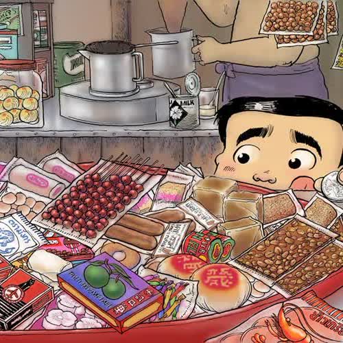 | คำอธิบาย : ยิ่งโตขึ้นทำไมยิ่งรู้สึกจนลง มีเงินหนึ่งร้อยบาทเดี๋ยวนี้ออกจากบ้านทีก็แทบหมดแล้ว ทั้งที่เขียมใจจะขาดทำให้นึกถึงเมื่อก่อน ถ้าได้เงินจากการทำไพ่ หรือรับจ้างเดินซื้อของ ซึ่งส่วนใหญ่ค่าจ้างก็คือเงินทอนนั่นแหละ ที่ผู้ใหญ่จะให้เราเป็นค่าแรงกำเหรียญบาทที่เหรียญใหญ่ๆ มีสัญญลักษณ์ตราแผ่นดิน รู้สึกเหรียญปี 2505 นะ เราชอบเหรียญรุ่นนี้เพราะใหญ่กำเต็มไม้เต็มมือดี หัวใจก็พองโตด้วยรู้สึกว่าตัวเองรวยมั่กๆ ในวินาทีนั้นขณะที่เหล่าร้านค้าจัดของใส่ถุงตามโพยที่ได้รับมา เราก็จะมาชะเง้อดูถาดใส่ขนม ที่เค้าจะเอาขนมต่างๆ เทรวมๆ กันอยู่เป็นขนมไม่มียี่ห้ออะไรหรอก มาจากประเทศจีนบ้าง โรงงานบ้านเราบ้าง คละกันไป เดี๋ยวนี้ตามร้านชำก็ยังมีให้เห็นนะแต่ที่สำคัญคือ มันชิ้นละเพียงหนึ่งบาท หรือ ห้าสิบสตางค์เท่านั้นเอง คิดดูสิ หนึ่งสลึง สองสลึง สามสลึง หนึ่งบาท เมื่อก่อนมันมีค่านะ ซื้ออะไรกินได้จนอิ่มเลยน่ะขณะที่เดี๋ยวนี้บาทหรือห้าสิบสตางค์ ให้ขอทาน เค้าคงอยากลุกขึ้นมาเตะเราในทันทีทันใดขนมที่วาดไว้คงผ่านตาท่านผู้อ่านมาบ้าง ถ้าวาดไม่เหมือน ผมขอโต้ด.....ด ไว้ตรงนี้ด้วยแล้วกันอ้อ...พอวาดเสร็จ มากอดอกดูเพิ่งเห็นว่า ตัวเองลืมวาด ตังเม ครองแครงกรอบ กล้วยฉาบ ข้าวตู อันนี้ก็ขอโต้ด...ดอีกทีนะฮะถ้าขาดอะไรที่ผมลืมเลือนไปก็บอกกล่าวมาได้นะครับ |