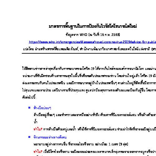 (2563). "มาตรการพื้นฐานในการป้องกันไวรัสโคโรนาชนิดใหม่".